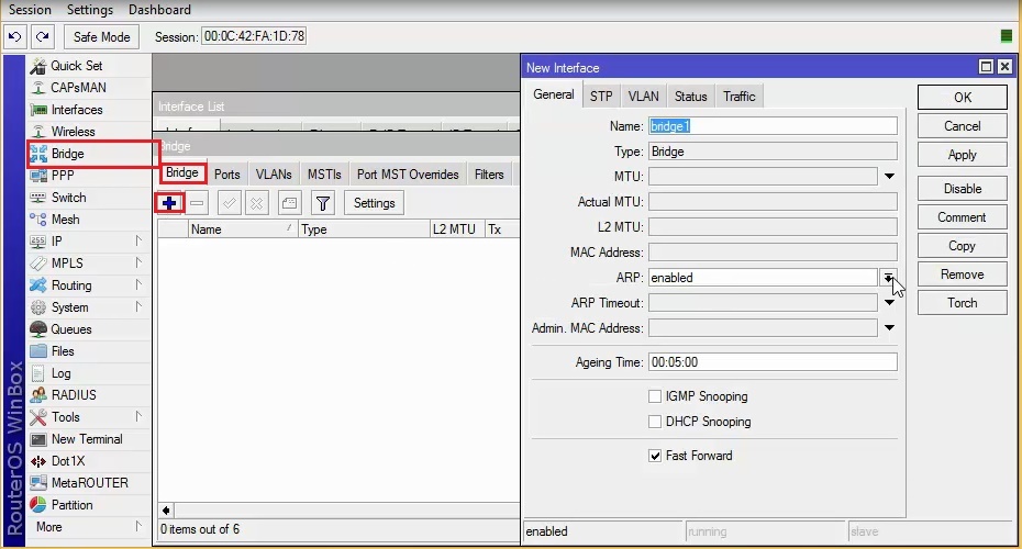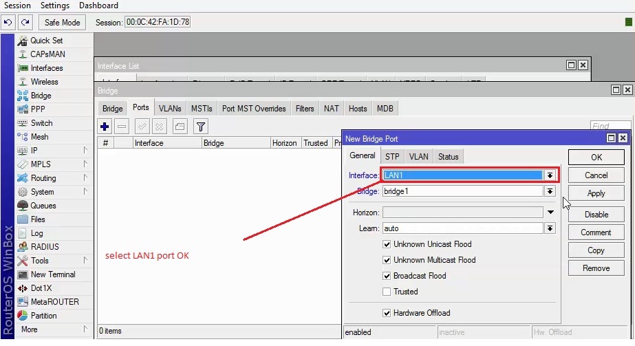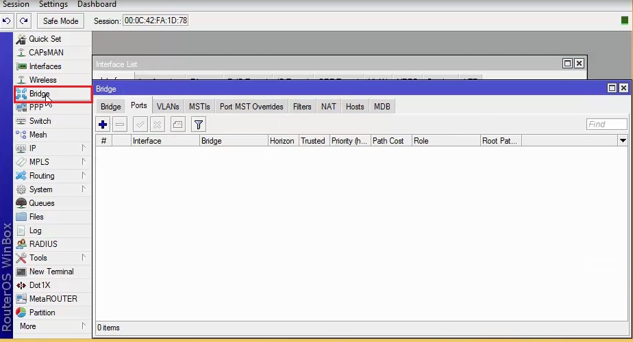 Click on Bridge then Click on Bridge now + sign add bridge port