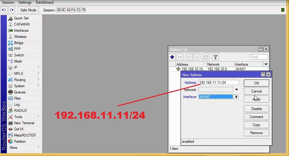 add address=192.168.11.11/24 interface=WAN2 network=192.168.11.0