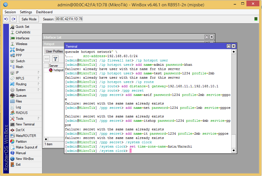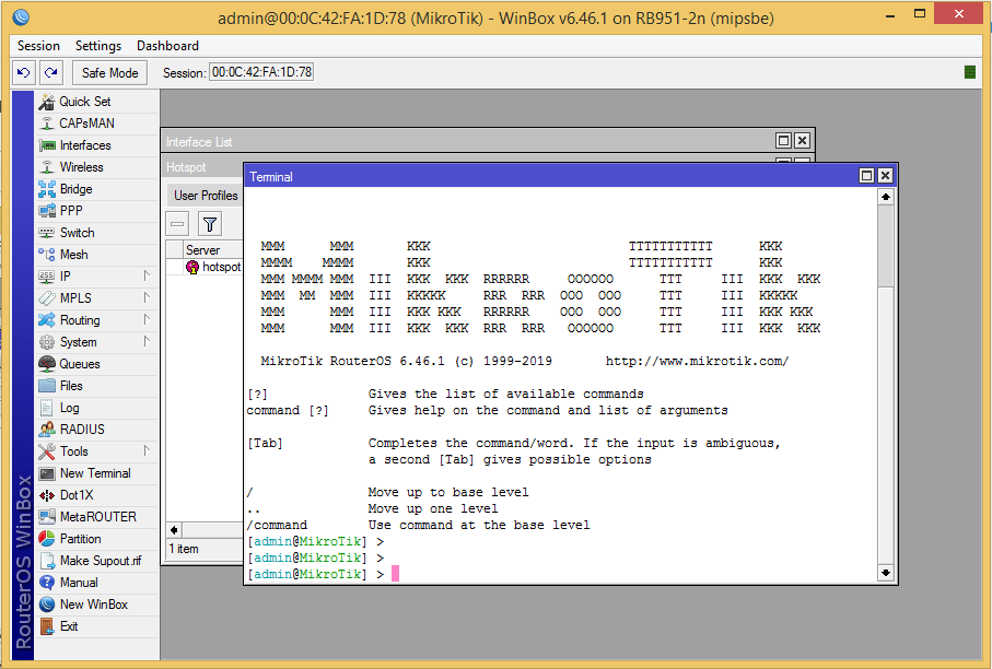 add address-pool=hs-pool-8 disabled=no interface=bridge1 name=hotspot1 \